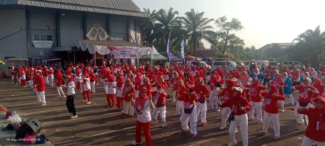 Meledak Ribuan Peserta Perlombaan Senam Massal Memadati Lapangan Stadion Sukung Kotabumi