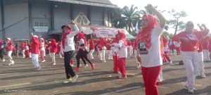 Ibu Devriyana Marda Ardian bersama Yayasan Jantung Sehat Cabang Lampung Utara dan komunitas senam Kotabumi Lampung Utara mengadakan perlombaan Senam massal,