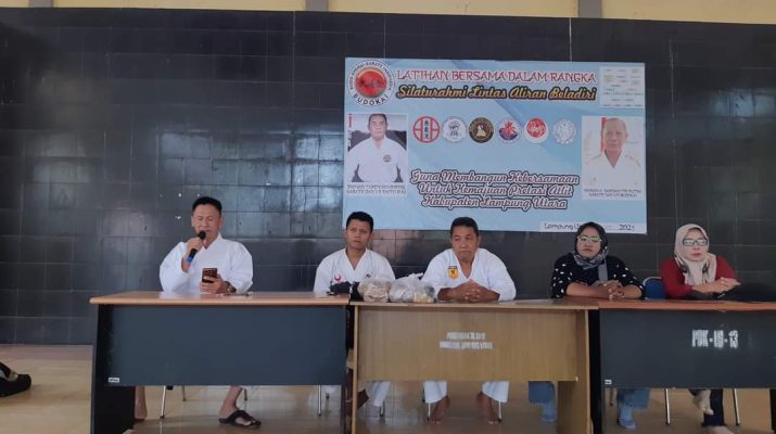 RN86.com. Lampura- Latihan bersama antar perguruan beladiri lintas aliran sukses digelar di Gedung Serba Guna (GSG) Dinas PU Kabupaten Lampung Utara. Kegiatan ini mempertemukan
